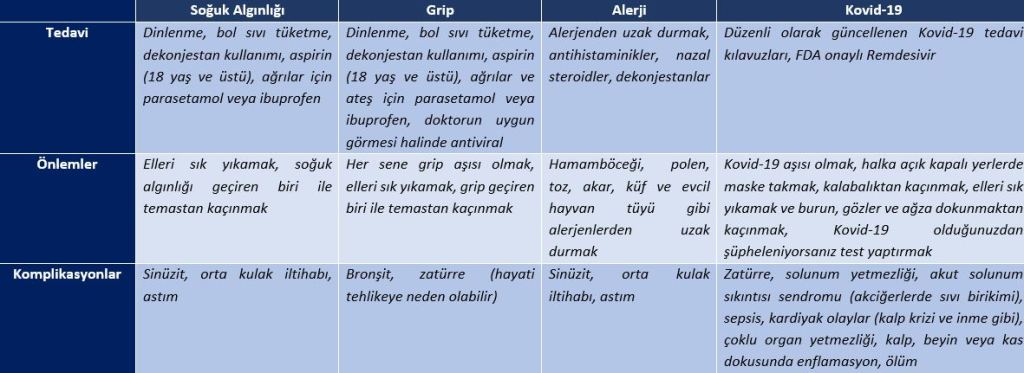 ‘Hasta’ hissetmek özellikle bu günlerde endişe verici bir hal alabiliyor. Burun akıntınız Kovid-19 kaynaklı olabilir mi? Ya da grip? Veya soğuk algınlığı? Peki ya alerji? Bu hastalıklar birçok ortak semptoma sahip olduğu için, hastalığınızın sebebinin hangisi olduğunu ayırt etmek oldukça zor olabilir. Burun akıntısı, öksürük veya yorgunluk hissedebilirsiniz. Ancak bu hastalıklar arasında önemli bazı farklılıklar bulunmakta. Sizi hasta eden şeyin ne olduğunu çözmek, iyileşmenize yardımcı olacağı gibi hastalığı başkalarına bulaştırmanızı da önleyebilecektir.
